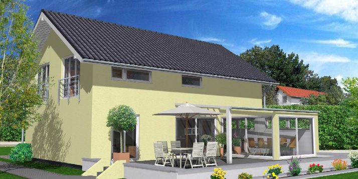 Wohnhaus mit Satteldach, Terrasse und Vordach